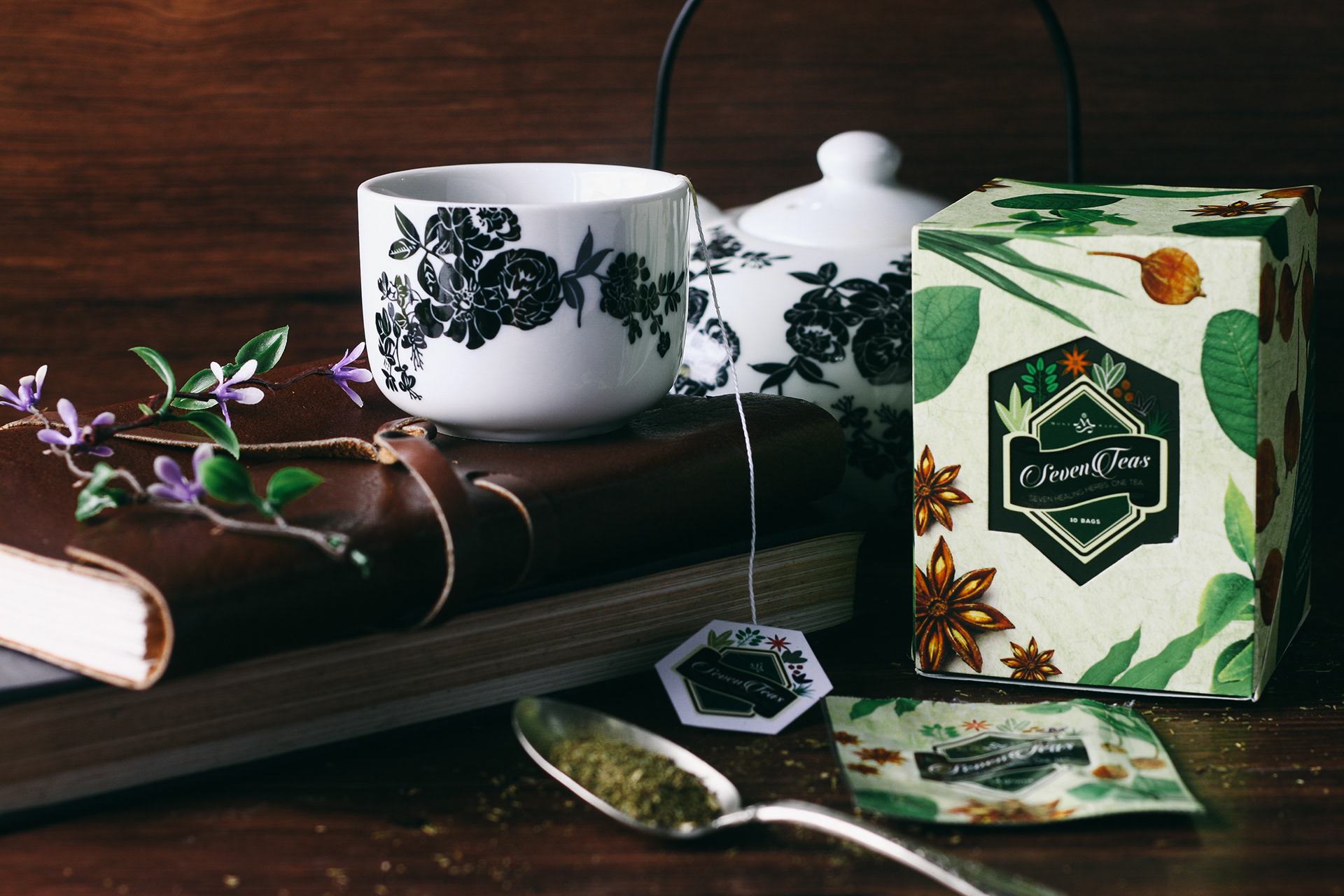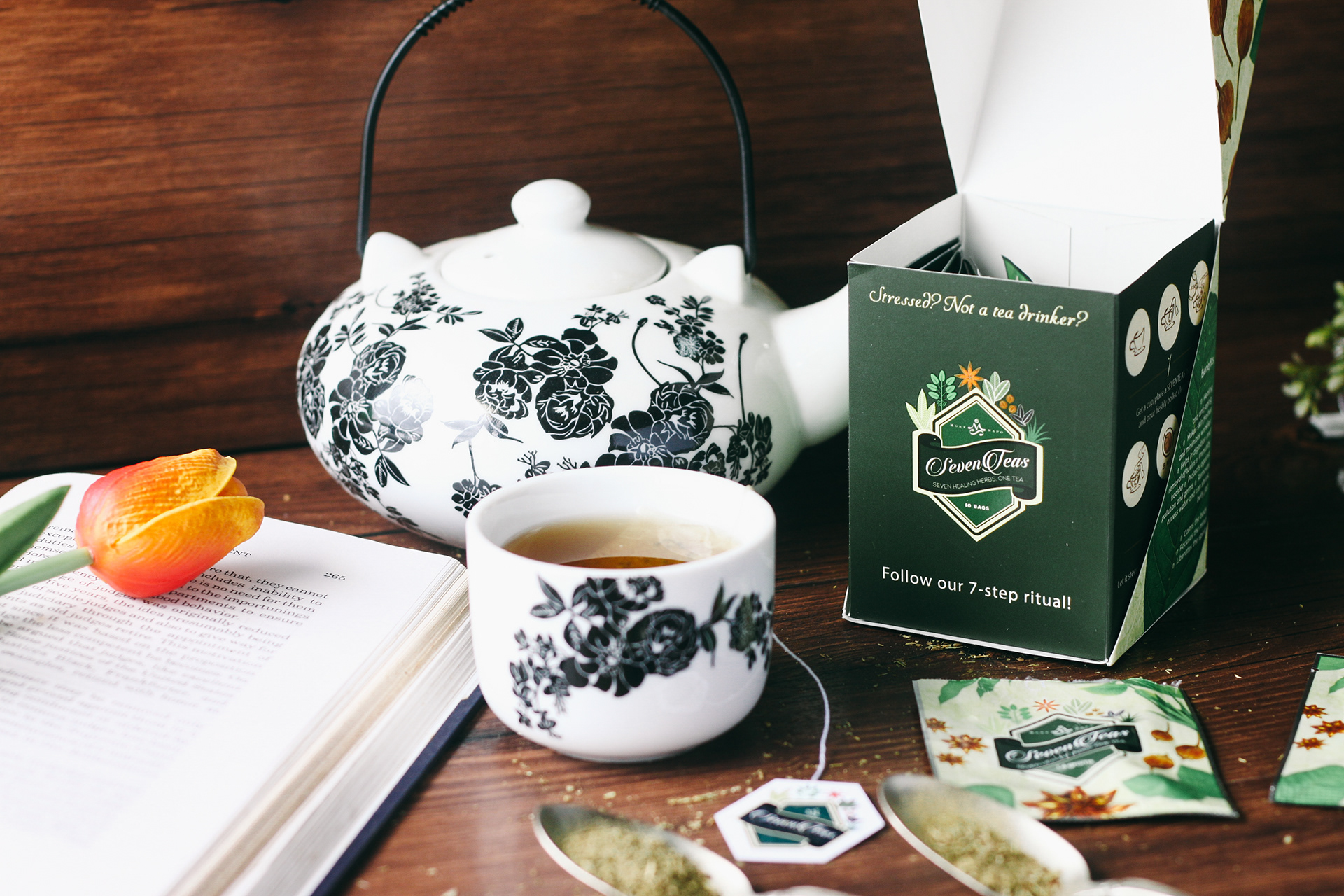 a logo and packaging design that exhibits the product’s seven (7) main and organic components in a fancy graphic-based form, tied with a 7-step ritual infographics intended for the so-called ‘tea-virgins’ out there.